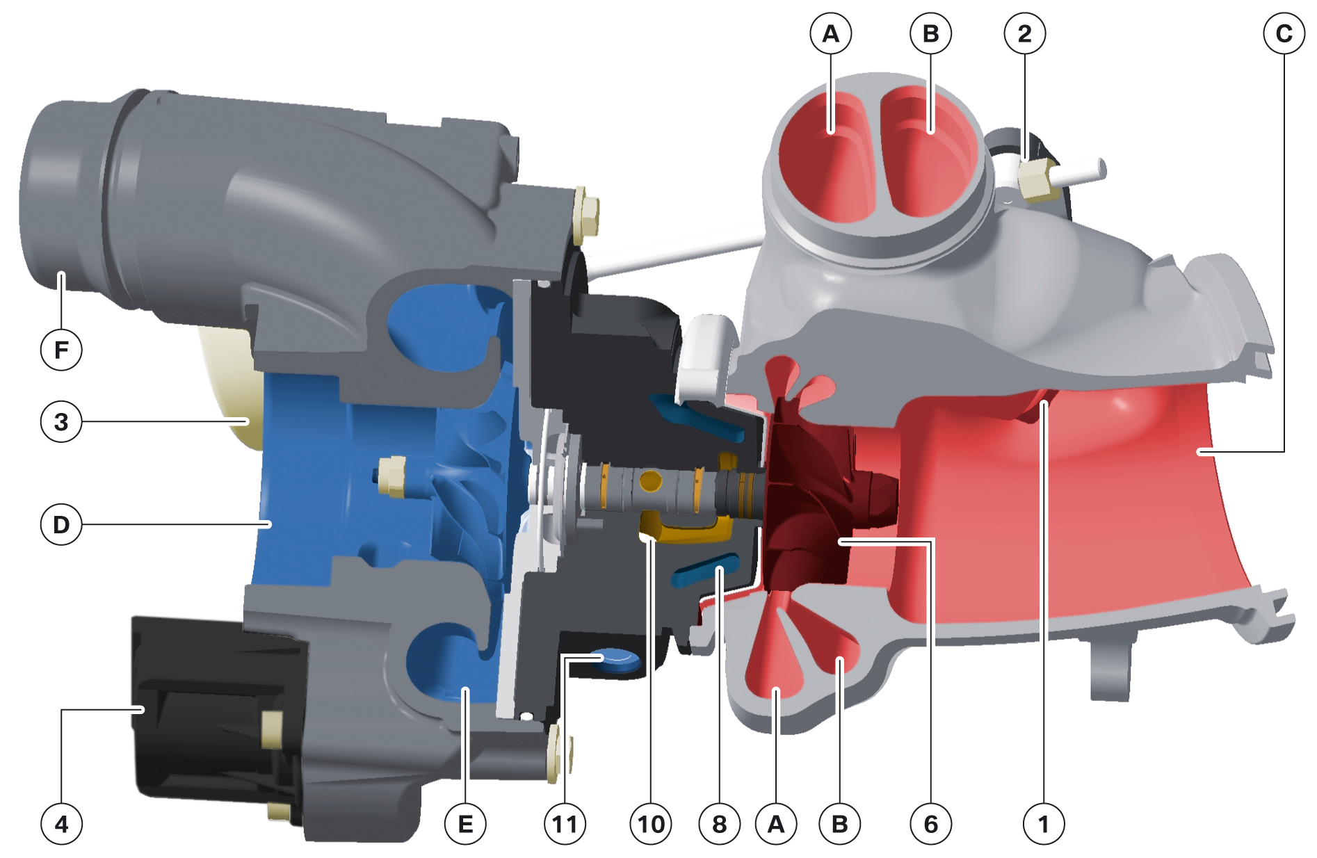 La lubrification de l'arbre du turbocompresseur est assurée sous pression.